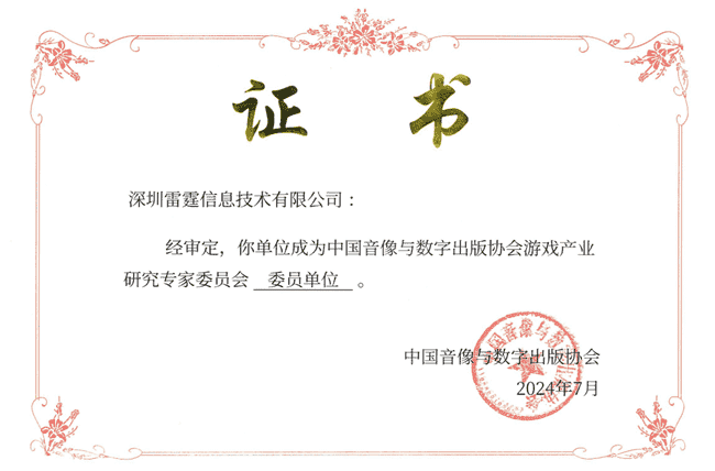 2024年7月25日,,中国音像与数字出版协会游戏产业研究专家委员会(以下简称“中国音数协游戏专委会”)成立大会在上海市召开,,,厦门一竞技网络技术股份有限公司及其子公司深圳雷霆信息技术有限公司(以下统称“公司”)正式成为中国音数协游戏专委会委员单位。。。