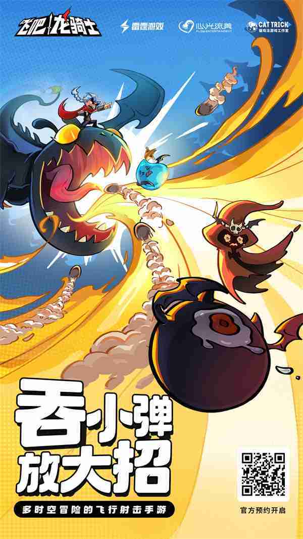 吞小弹,,放大招!!!多时空冒险的飞行射击休闲手游《飞吧龙骑士》官方预约现已开启。。现在预约还有丰厚的福利等你领!!!!大家可以关注《飞吧龙骑士》官方公众号,,,了解最新游戏进展。。。。