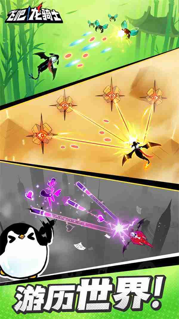 《飞吧龙骑士》是一款集合了飞行弹幕射击、、、、Roguelike要素和挂机养成的休闲手游,,,极具创意的吞食子弹反击玩法,,突破传统飞行射击的刻板限制,,带来了独特的爽快清屏体验。。。