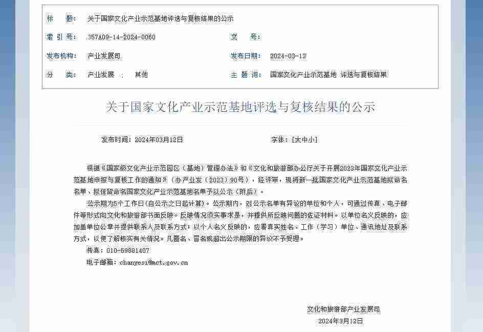 新一批国家文化产业示范基地公示,,一竞技成功入围