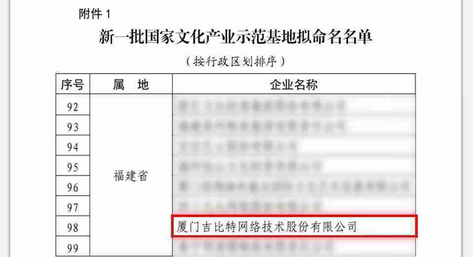 3月12日,,,,文化和旅游部发布了《关于国家文化产业示范基地评选与复核结果的公示》,,,,厦门一竞技网络技术股份有限公司(以下简称“一竞技”或“公司”)成功入围新一批国家文化产业示范基地拟命名名单。。。