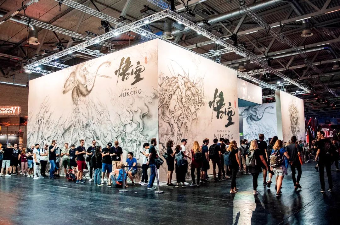 2023年8月23日,,,在德国科隆游戏展上,,,,玩家排队试玩《黑神话::::悟空》。。。。图/新华