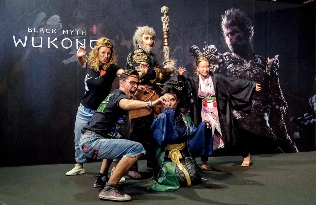 2024年8月22日,,,人们在德国2024年科隆国际游戏展《黑神话:::悟空》拍照区拍照。。。。图/新华